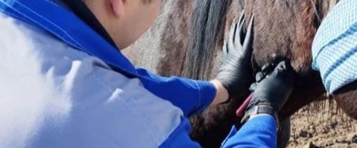 В рамках профилактического карантина ветеринарный врач Дворников А.В. проводит отбор проб крови у лошадей для исключения заразных болезней.